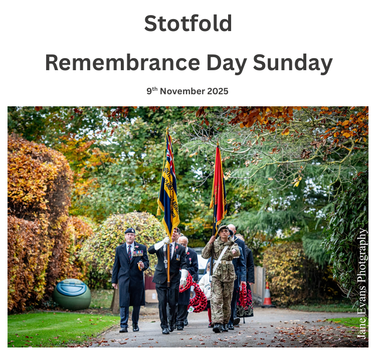 Stotfold Remembrance Day Sunday 9th November 2025 A temporary road closure will be in place on Sunday 9th November 2025 for the annual Remembrance Day Parade.